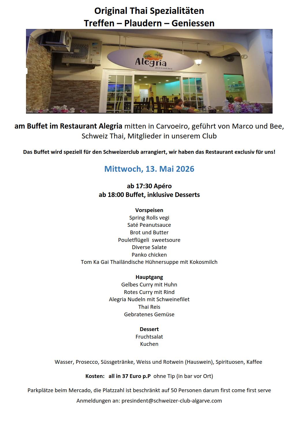 | 13.05.2026 | Thai-Dinner in Carvoeiro |